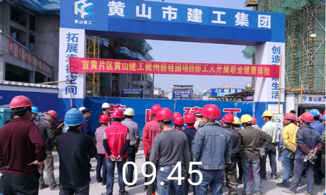 2019年4月17日上午9時,黃山建工集團承建的徽州碧桂園德源項目工程東大門,人聲鼎沸、歡聲笑語,每個人臉上都洋溢著幸福的笑容,他們排著隊,有組織、有秩序地參加由碧桂園德源工程施工項目部組織的“關愛健康、免費體檢”活動。此次體檢活動邀請了屯溪同仁門診部的四名醫生,分科體檢,對每位職工的心率、血壓、外科、口腔等做了細致的檢查,并做好體檢記錄,同時對工友們關心的日常生活問題、常識做了解答和溫馨提示,此次項目部參加體檢人員惠及95名。本次活動是為了增強員工關懷,保障員工身體健康,營造”平安、和諧、幸福、美麗”的示范工地。