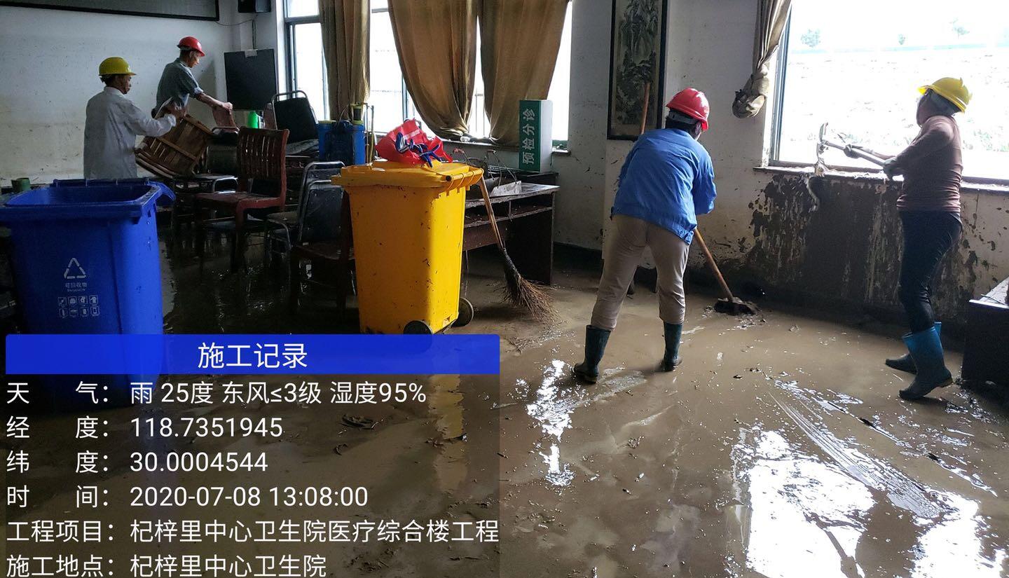 2020年7月7日,由于持續多日的降水,黃山市歙縣遭遇五十年一遇的大洪水,山洪暴發后,歙縣杞梓里中心衛生院受災嚴重。8號-12號黃山建工集團歙縣杞梓里中心衛生院醫療綜合樓工程項目部,自發組織人員幫助衛生院進行災后清理等志愿服務。