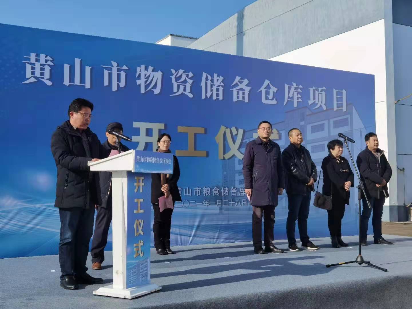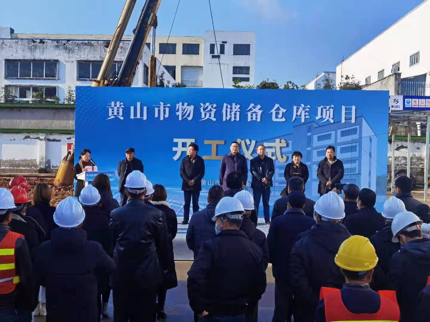 2021年128日上午9:30,黃山市物資儲備庫項目開工奠基活動在九龍工業園區項目地舉行,省糧食和物資儲備局物資和能源儲備處處長孫安慶、四級調研員何薇、市發展改革委(市糧食儲備局)主任(局長)丁士禮、建設單位主要負責人、黃山建工集團總經理葉金發等相關單位負責人參加了奠基儀式。