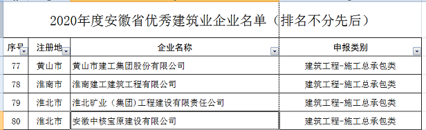 近日,安徽省住建廳傳來喜訊,2021年度安徽省優秀建筑業企業評選結果已出爐,黃山市建工集團榮獲2020年度安徽省優秀建筑業企業---建筑工程施工總承包類優秀建筑業企業。